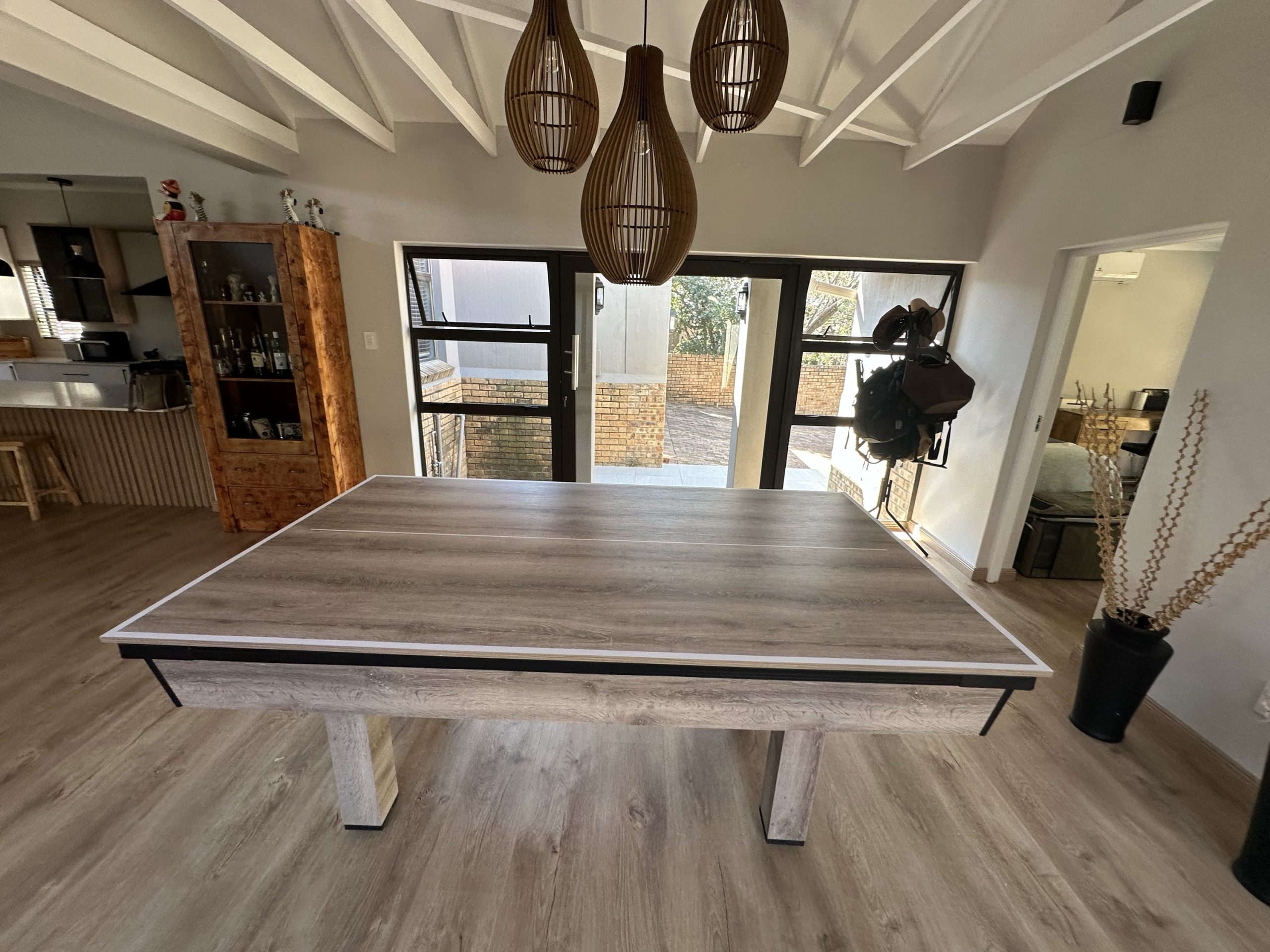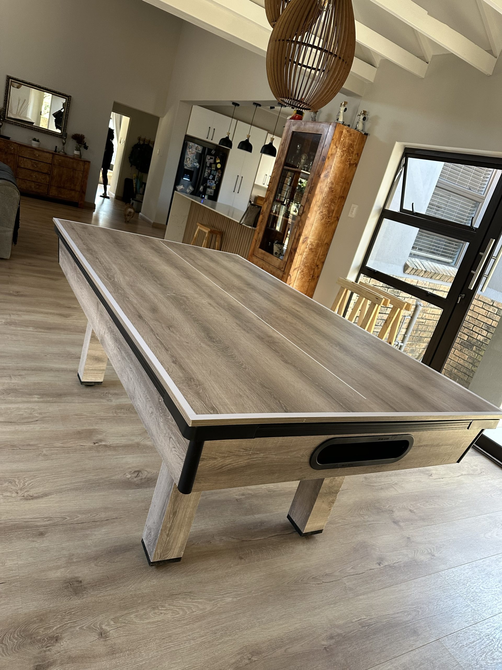 Our pool tables are manufactured from A Grade MDF Super-wood boards. Our Tables are fitted with buffalo speed cloth giving a wood top the speed, easy maintenance and durability. Our tables has ball return feature with a PVC strip for modern finishes with aluminium beading on the sides for modern designs and to stand out in your entertainment room.