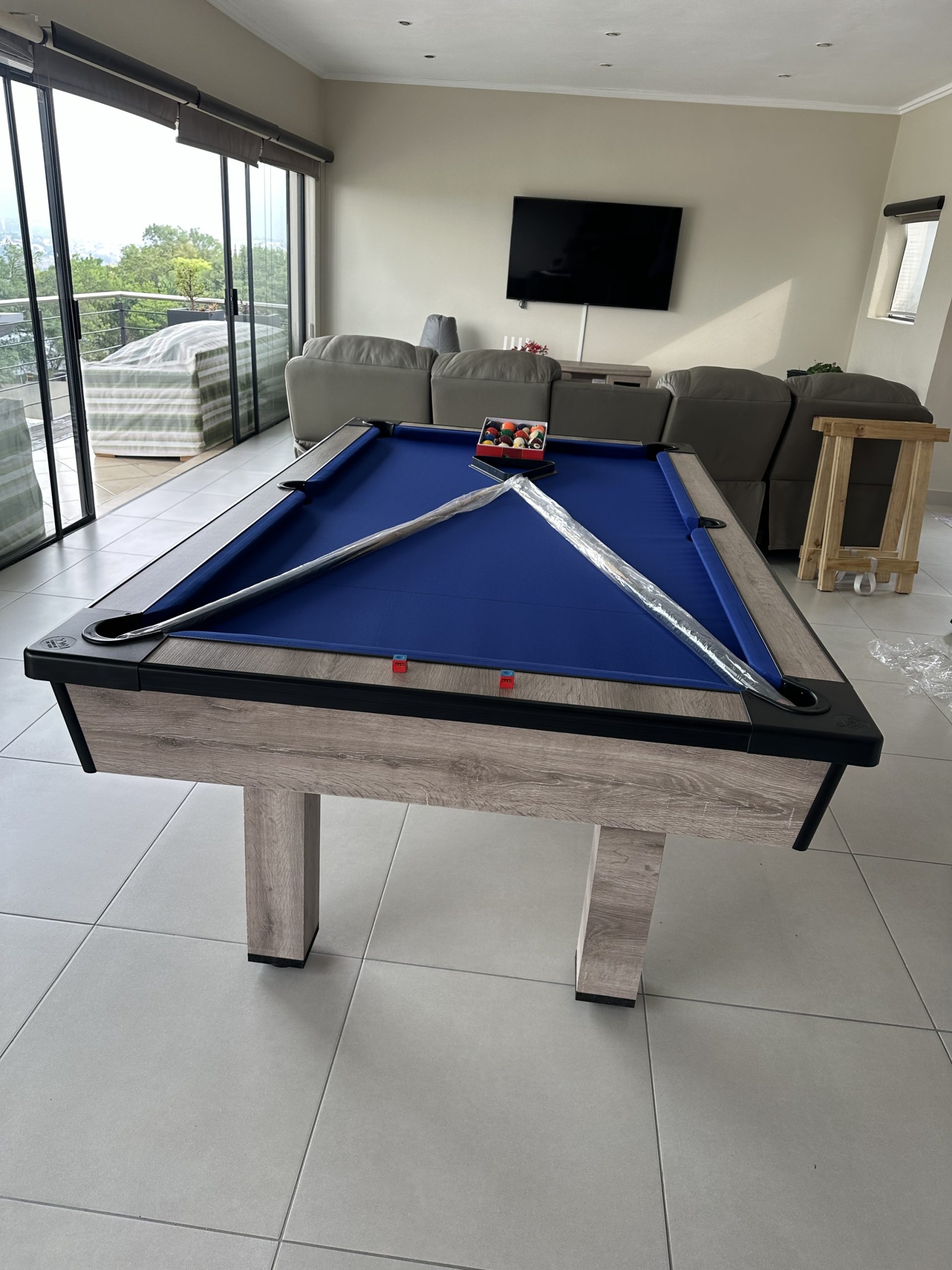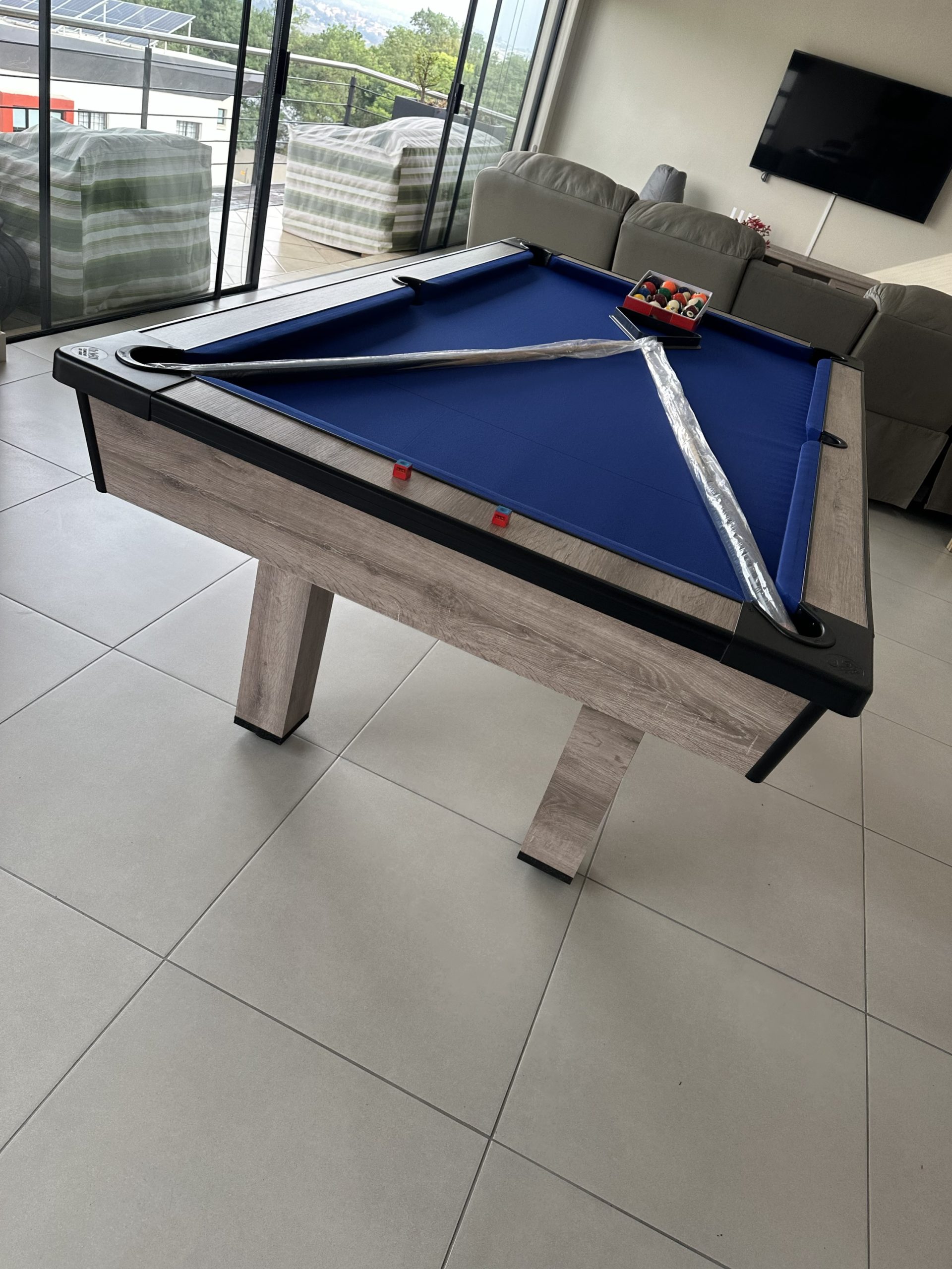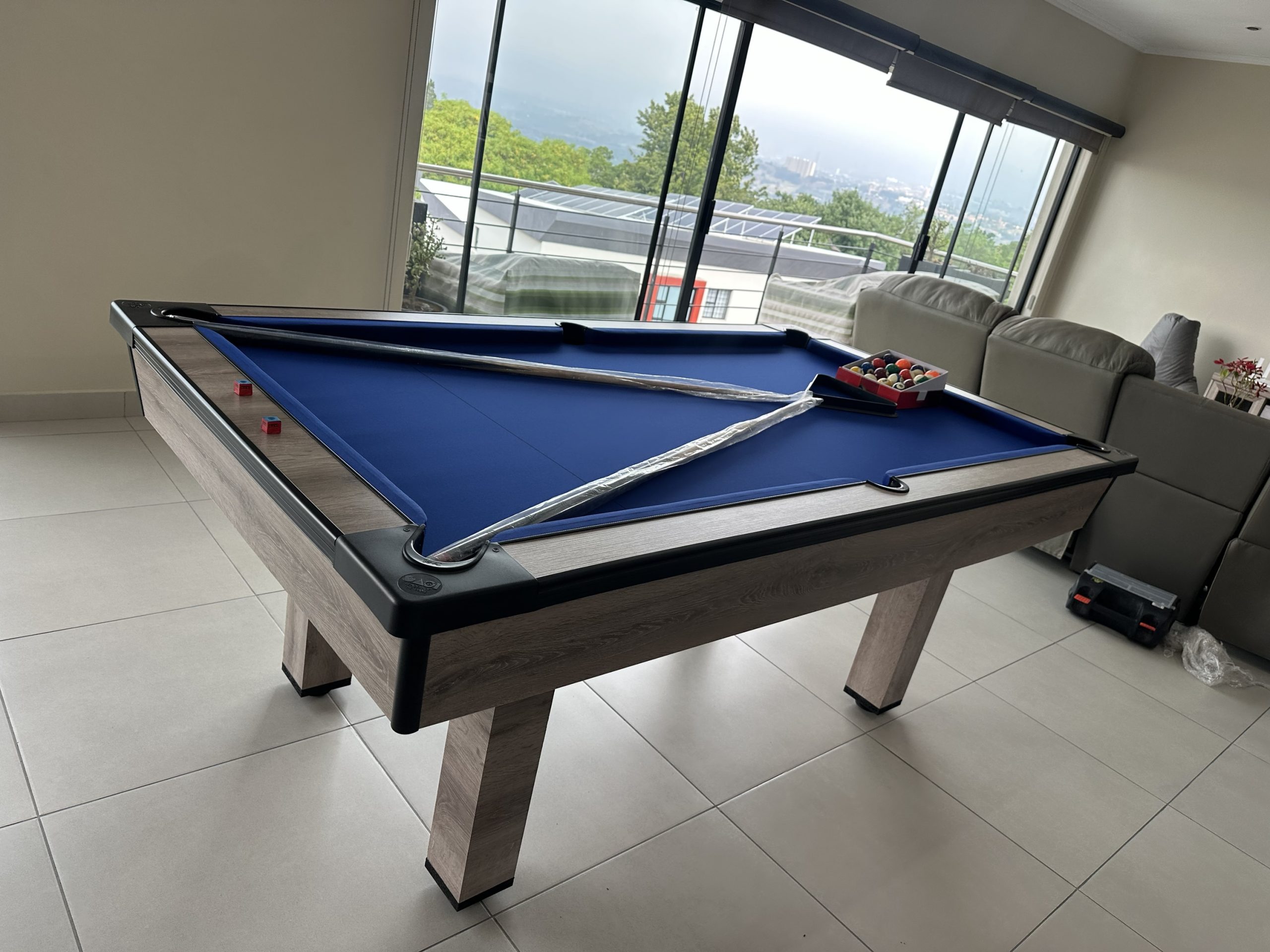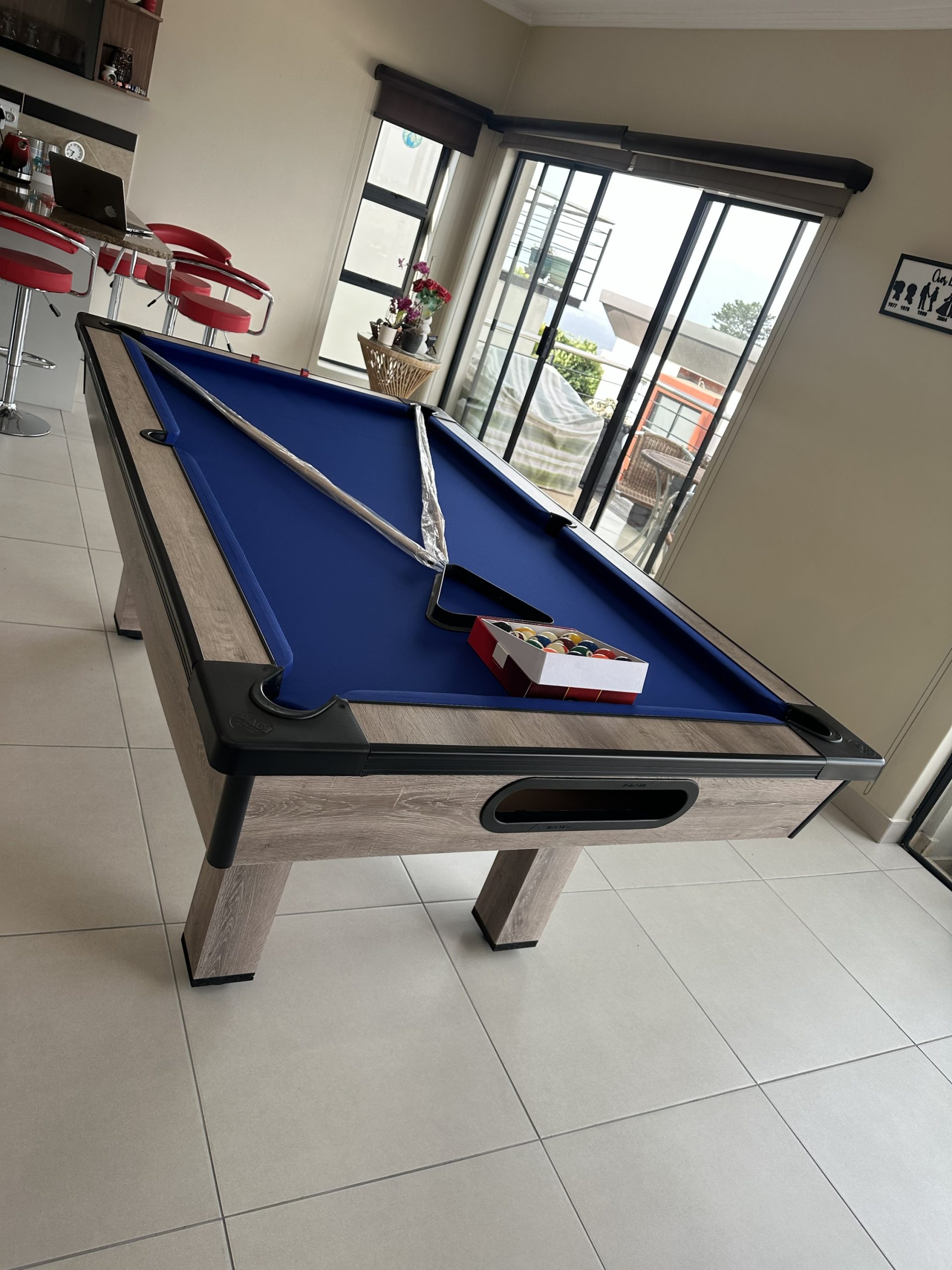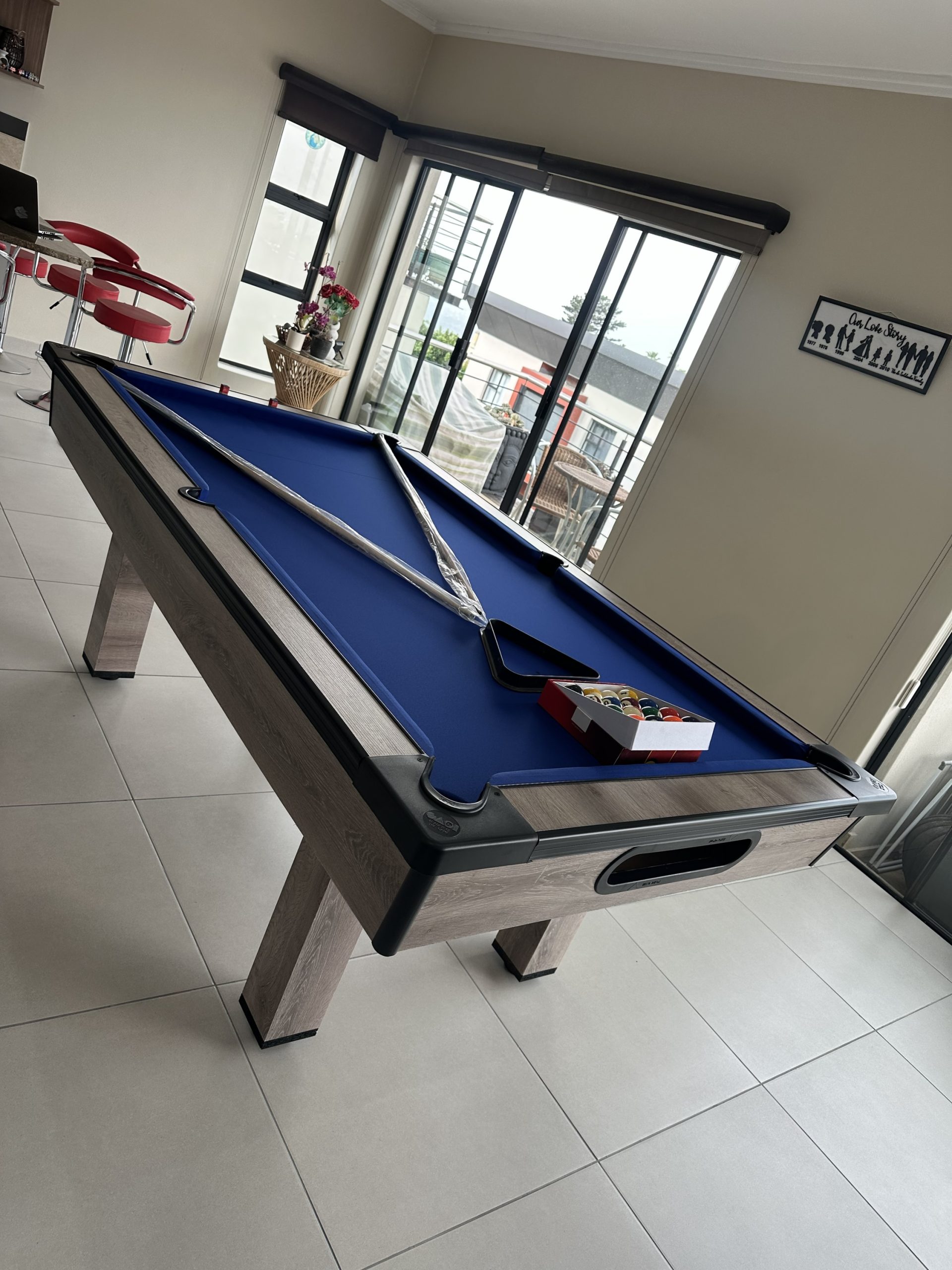 Our pool tables are manufactured from A Grade MDF Super-wood boards. Our Tables are fitted with buffalo speed cloth giving a wood top the speed, easy maintenance and durability. Our tables has ball return feature with a PVC strip for modern finishes with aluminium beading on the sides for modern designs and to stand out in your entertainment room.