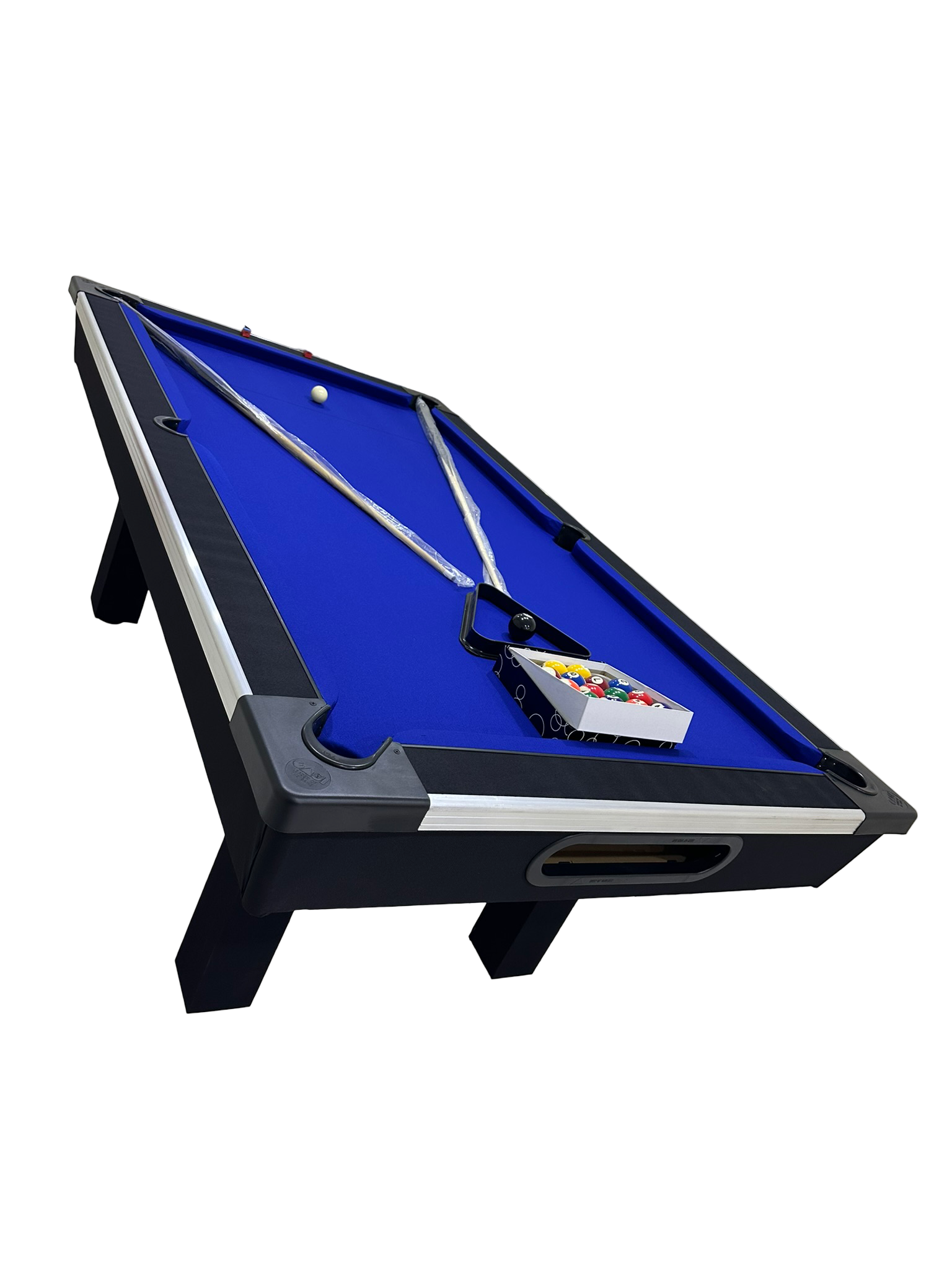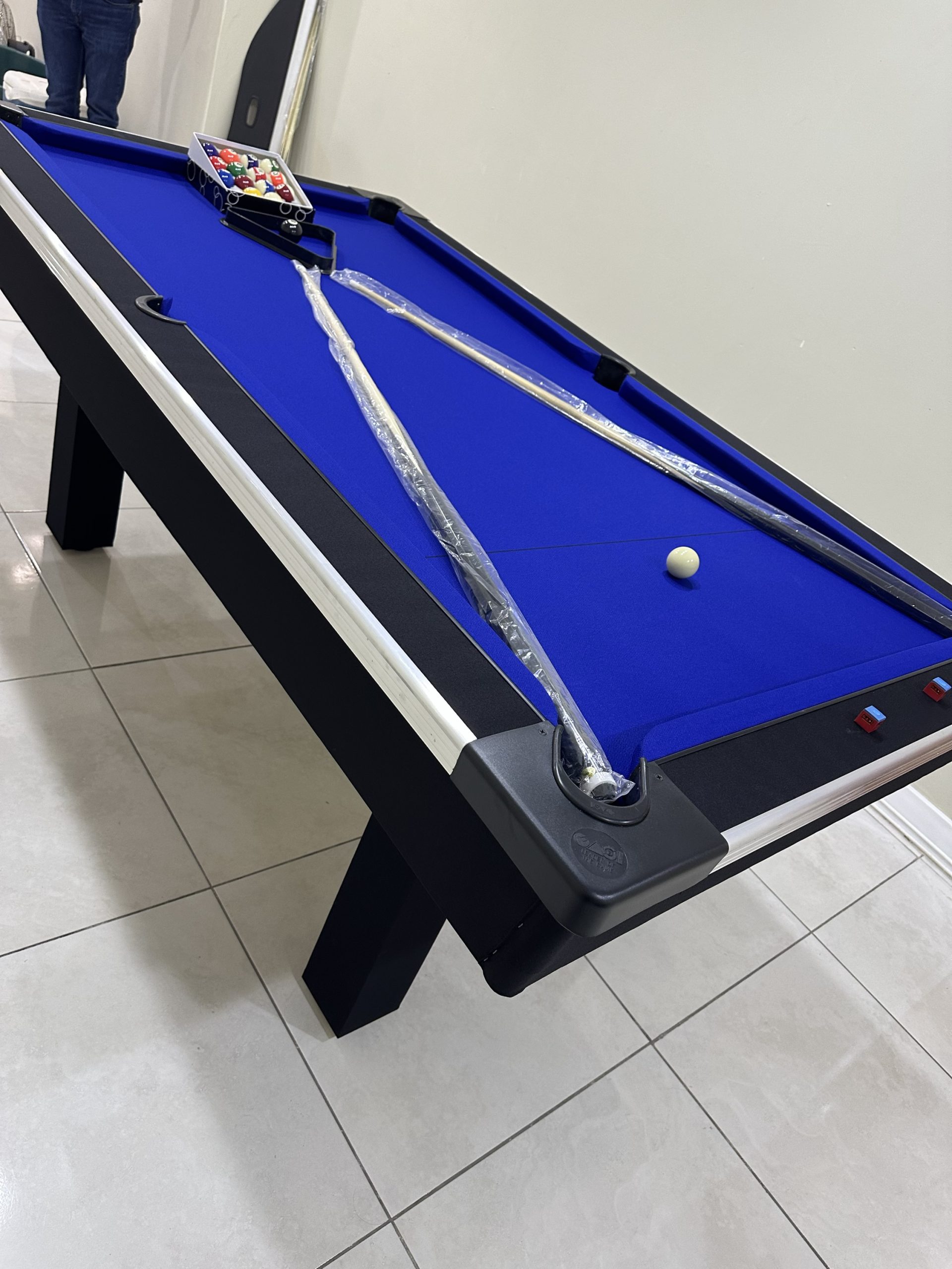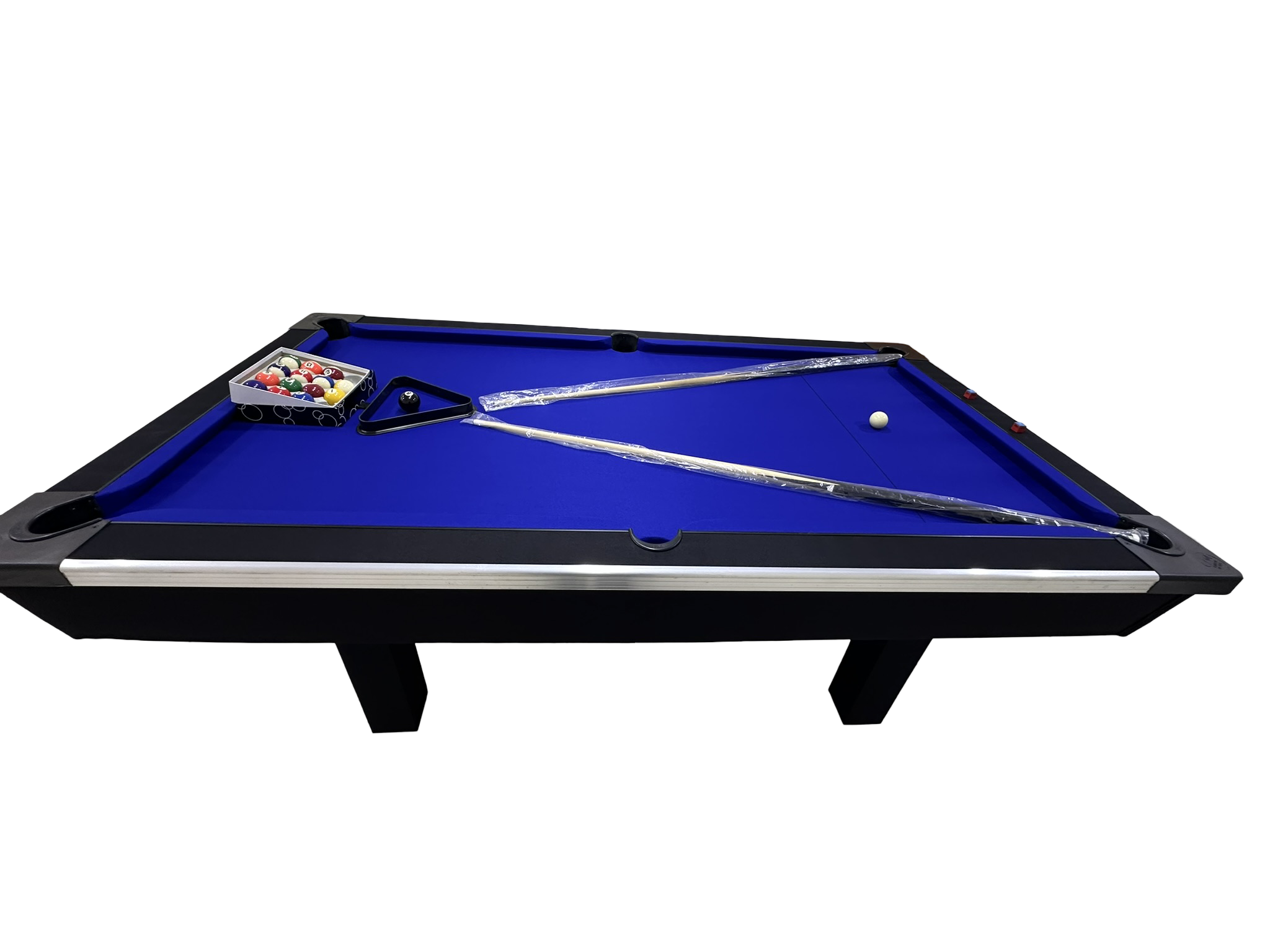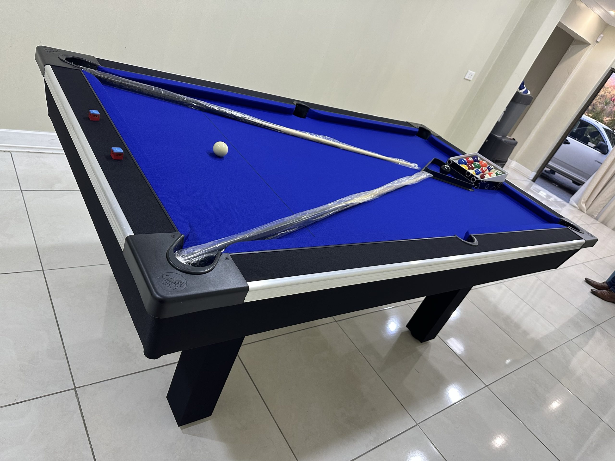 Our pool tables are manufactured from A Grade commercial boards. Our Tables are fitted with buffalo speed cloth giving a wood top the speed, easy maintenance and durability. Our tables has ball return feature with a PVC strip for modern finishes with aluminium beading on the sides for modern designs and to stand out in your entertainment room.
